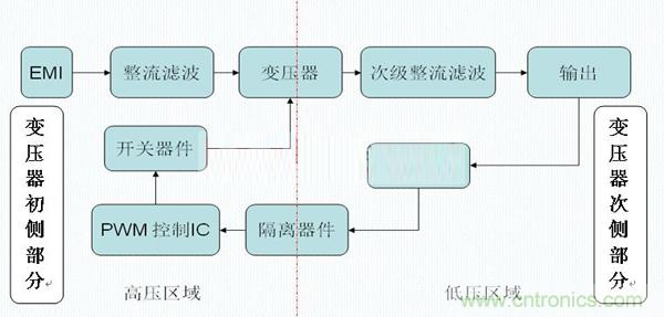 一般來說,總的來分按變壓器初測部分和次側(cè)部分來說明。開關(guān)電源的電路包括以下幾個主要組成部分,如圖1