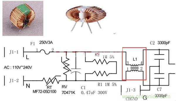 共模電感上,有兩個共模電感線圈。這兩個線圈繞在同一鐵芯上,匝數(shù)和相位都相同(繞制方向向反)。共模電感器要不易飽和,如此就需要選擇低B-H(磁芯損耗與飽和磁通密度)溫度特性的材料,因需要較高的電感量,磁芯的μi值也就要高,同時還必須有較低的磁芯損耗和較高的BS(飽和磁通密度)值,符合上述要求之磁芯材質(zhì),目前以鐵氧體材質(zhì)最為合適,磁芯大小在設(shè)計時并沒有一定的規(guī)定,原則上只要符合所需要的電感量,且在允許的低頻損耗范圍內(nèi),所設(shè)計的產(chǎn)品體積最小化。