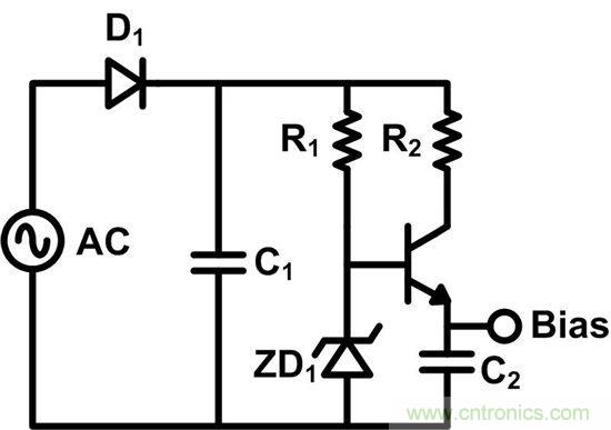 BJT 線性電路可提供一款組件數(shù)量最少的簡單偏置電源解決方案。不過,使用該方案的主要缺點(diǎn)是效率低。