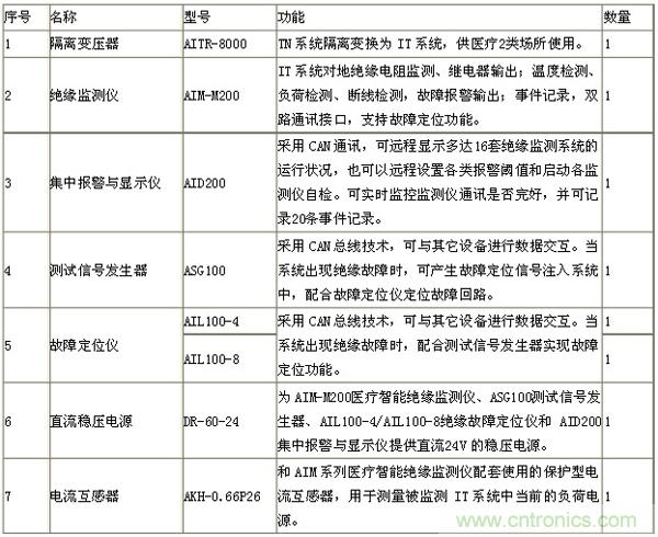 隔離電源監(jiān)控系統(tǒng)配置清單