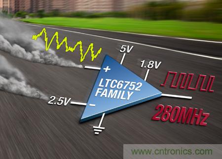 【導讀】近日,凌力爾特公司推出 LTC6752 系列比較器,該系列器件由于具備1.2ns 快速上升和下降時間以及 280MHz 的切換頻率,因此成為目前可用的最快 CMOS 輸出比較器。LTC6752 系列包括 5 種可選器件,這些器件采用不同封裝,提供獨特的功能組合。