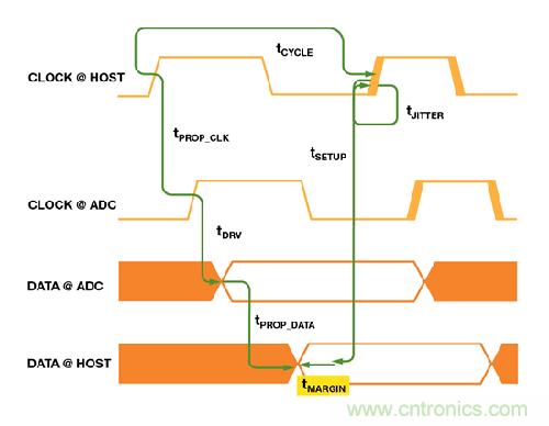 tPROP_CLK: 從主機(jī)到ADC 的傳輸線(xiàn)路的數(shù)據(jù)傳播延遲
