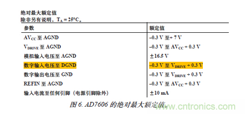 圖6. AD7606 的絕對(duì)最大額定值