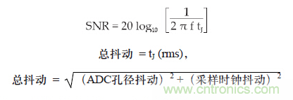 總抖動(dòng)會(huì)產(chǎn)生誤差電壓,ADC 總SNR 的限制因素為