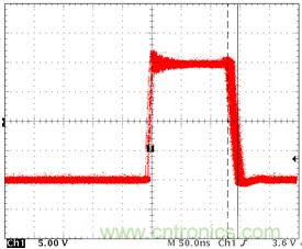 測(cè)試的目的是看上MOS管導(dǎo)通時(shí),有沒(méi)有同時(shí)把下管打開(kāi),從而導(dǎo)致電源直接導(dǎo)通到地而引起短路。如圖三所示藍(lán)色曲線(Vgs_Lmos)就是下管在上管導(dǎo)通的同時(shí),被帶了起來(lái),如果藍(lán)色曲線的被帶起來(lái)的尖峰超過(guò)了MOS管的Vth要求,同時(shí)持續(xù)時(shí)間(Duration)也超過(guò)了datasheet要求,從而就會(huì)有同時(shí)導(dǎo)通的風(fēng)險(xiǎn)。當(dāng)然,這是大家最常見(jiàn)到的情況。