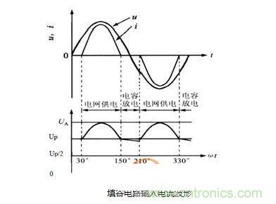 LN系列采用填谷電路進行設(shè)計,利用高壓陶瓷電容完美替代鋁電解電容,增加了整流管的導通角,使輸入電流波形從尖峰脈沖變得更接近正弦波,從而大幅度提高電源的功率因素(如表1所示),提高電源的轉(zhuǎn)換效率,更加利于環(huán)保節(jié)能,顯著降低總諧波失真。如圖所示:
