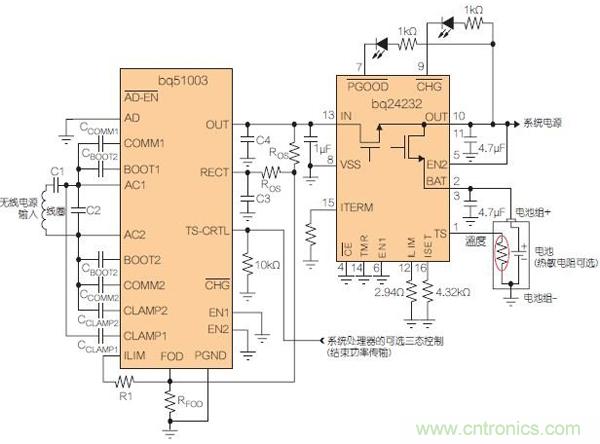 圖4:適合低功耗應(yīng)用的無線電源接收器(帶電池充電器)