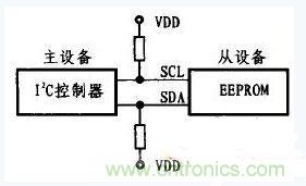 在介紹I2C總線結(jié)構(gòu)之前。要搞清楚兩個(gè)概念:I2C總線控制器和I2C設(shè)備。I2C總線控制器為微控制器或微處理器提供控制I2C總線的接口,它控制所有I2C總線的特殊序列、協(xié)議、仲裁、時(shí)序,這里指MPC8250提供的I2C總線控制接口。I2C設(shè)備是指通過(guò)I2C總線與微控制器或微處理器相連的設(shè)備,如EEPROM、LCD驅(qū)動(dòng)器等,這里指EEPROM.