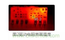 有時,電路參數(shù)和性能看似正常,但實際上隱藏很大的問題。如圖 2所示,某電路基本性能沒有問題,但在常溫下,用紅外熱成像儀一測,不得了了,MOS管的驅(qū)動電阻表面溫度居然達(dá)到95.2℃。長期工作或高溫環(huán)境下,極易出現(xiàn)電阻燒壞、模塊損壞的問題??梢?,研發(fā)過程中使用熱成像儀測試元器件的溫度尤其重要,可及時發(fā)現(xiàn)并定位問題點。通過調(diào)整電路參數(shù),降低電阻的歐姆熱損耗,且將電阻封裝由0603改成0805,大大降低了表面溫度。