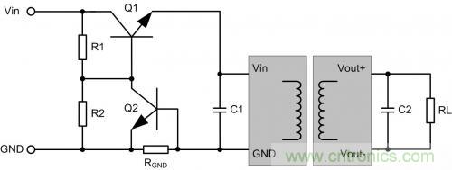 通過(guò)檢測(cè)RGND的電流,增大Q2的導(dǎo)通電壓后,把Q1關(guān)斷,停止供電,達(dá)到過(guò)流或短路保護(hù)的目的。