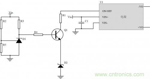 對(duì)于輸入端帶開關(guān)機(jī)控制的電源來(lái)說(shuō),關(guān)掉電源可以承受更高的輸入過(guò)電壓,輸入欠壓時(shí),也能保護(hù)不會(huì)因過(guò)流損壞。如下圖,通過(guò)簡(jiǎn)單的431基準(zhǔn)檢測(cè)電路,可精確設(shè)置過(guò)壓或欠壓保護(hù)值,保護(hù)電源在輸入電壓異常情況下不損壞。