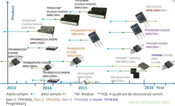 Transphorm依據(jù)基本發(fā)展路線圖進(jìn)行開(kāi)發(fā),首先是合格的600 V器件和1000V器件。Transphorm的研究和開(kāi)發(fā)還在繼續(xù),現(xiàn)在推出了600V的擴(kuò)展系列,采用更低的R(ON)設(shè)備和高功率封裝(含模塊),然后是繼150V器件之后的1200 V器件。據(jù)Eric透露,今年會(huì)推出900V和1200V的產(chǎn)品,低壓方面會(huì)提供150V的產(chǎn)品。據(jù)悉,未來(lái)Transphorm還將推出代替Cascode的E-Mode創(chuàng)新結(jié)構(gòu)技術(shù),將會(huì)把當(dāng)前結(jié)構(gòu)中存在的不利因素解決掉,實(shí)現(xiàn)更卓越的功率器件性能。將提供更大功率的產(chǎn)品,從2014年推出第一顆TO240,電流從30、40,逐步往60、70、80的方向發(fā)展。