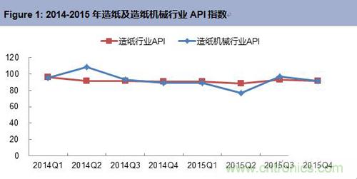 自動(dòng)化產(chǎn)品在造紙及造紙機(jī)械行業(yè)的應(yīng)用十分廣泛,主要的產(chǎn)品類型有傳動(dòng)系統(tǒng)、控制系統(tǒng)、執(zhí)行機(jī)構(gòu)和過(guò)程控制儀表等。2015年四季度造紙行業(yè)自動(dòng)化產(chǎn)品市場(chǎng)規(guī)模為2.32億元,同比下滑8.5%;造紙機(jī)械行業(yè)自動(dòng)化產(chǎn)品市場(chǎng)規(guī)模為0.41億元,同比下滑8.4%。行業(yè)API指數(shù)均小于100。受整體經(jīng)濟(jì)環(huán)境低迷、產(chǎn)能過(guò)剩矛盾、資源整合、行業(yè)結(jié)構(gòu)調(diào)整等因素影響,且隨著“新環(huán)保法”、“水十條”等環(huán)保新政的出臺(tái)和實(shí)施,造紙行業(yè)新建和改造項(xiàng)目減少,從而使造紙及造紙機(jī)械行業(yè)自動(dòng)化產(chǎn)品市場(chǎng)規(guī)模萎縮。
