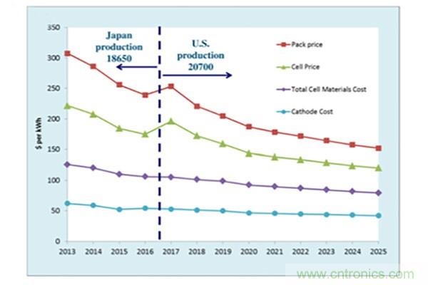 Panasonic、Samsung、LG的18650電池良率一般在98%以上(一次直通率),而國內(nèi)的一般控制在90%左右,電池的成本降低是以量和良率的不斷提高為基礎(chǔ)的,下圖為Tesla電池成本的降低圖。這里面存在的潛在風險是:“Battery cost will go up slightly in 2017 due to high depreciation charges, but larger capacity per cell will neutralize the increase by 2018. However, if the factory is installed and utilization is below, say, 70%, there will be no cost advantage over evolutionary growth, even in 2020”。