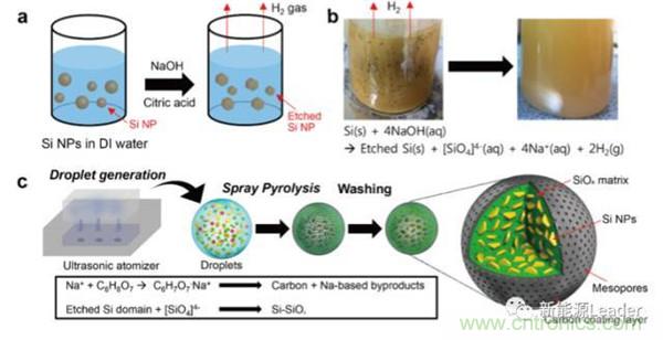 晶體Si的優(yōu)勢是容量高,首效高,缺點是體積膨脹大,為了克服這一問題,工業(yè)上一般是將晶體Si制成納米顆粒,分散在石墨之中,利用石墨吸收Si的體積膨脹。也可以將Si材料制成特殊形狀,例如Si納米線,蜂巢狀Si等。浙江大學的Hao Wu等「4」利用鎂熱反應制成了蜂窩狀的硅材料,如下圖所示,獨特的蜂窩狀結構能夠很好的吸收Si的體積膨脹,顯著改善了循環(huán)性能,循環(huán)800次容量仍然可達1058mAh/g,容量保持率為91%。