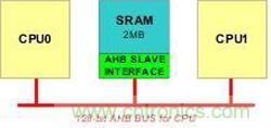 用戶RAM大小為2MB,掛接在雙核之間的AHB總線上,兩個內(nèi)核訪問區(qū)域可以任意配置。其內(nèi)部是一塊 SRAM 和AHB總線從接口電路,如圖2-1所示。讀訪問有一個周期的延遲,寫訪問無延遲。讀寫訪問時序見圖2-2、圖2-3。讀寫都支持字節(jié)(byte)訪問、半字(half-word)訪問或字(word)訪問。
