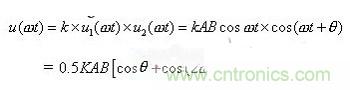 K為模擬乘法器的放大系數(shù)。進行低通濾波后濾掉交流成分得: