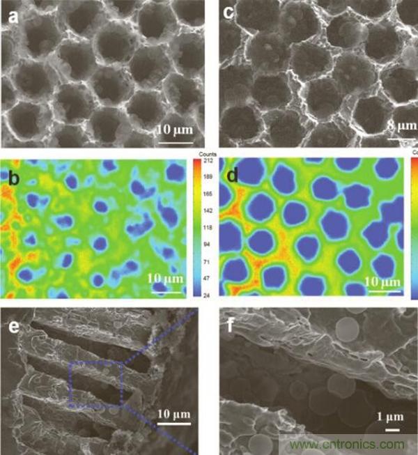 a-d)電流密度為1mA cm -2的多孔Cu-5-50-12上沉積不同容量鋰時(shí)的EPMA圖