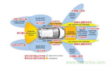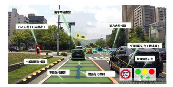 ADAS(高級輔助駕駛系統(tǒng)),是指利用安裝于車上各式各樣的傳感器,在第一時間收集車內(nèi)的環(huán)境數(shù)據(jù),進行靜、動態(tài)物體的辨識、偵測與追蹤等技術(shù)上的處理,從而能夠讓駕駛者在最快的時間察覺可能發(fā)生的危險。通常包括導航與實時交通系統(tǒng)TMC,電子警察系統(tǒng)ISA 、自適應(yīng)巡航ACC 、車道偏移報警系統(tǒng)LDWS、車道保持系統(tǒng),碰撞避免或預(yù)碰撞系統(tǒng)、夜視系統(tǒng)、自適應(yīng)燈光控制、行人保護系統(tǒng)、自動泊車系統(tǒng)、交通標志識別、盲點探測,駕駛員疲勞探測、下坡控制系統(tǒng)和電動汽車報警系統(tǒng)等。