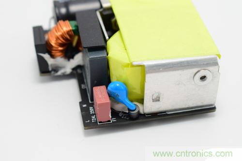 保險旁是藍色的Y電容,腳上套有磁環(huán)。