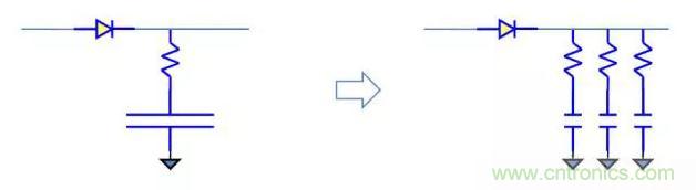 ?可以采用低ESR的電解電容替代普通電容,或者用多個(gè)電容并聯(lián)來替代單 個(gè)電容。