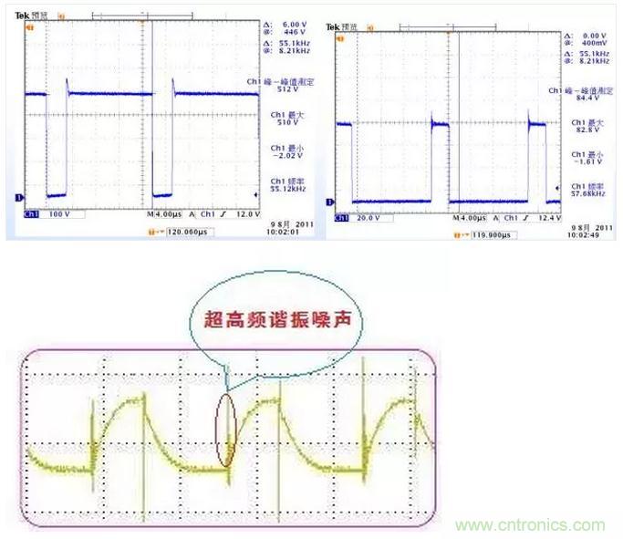 通過選用軟恢復(fù)特性二極管、結(jié)電容小的開關(guān)管和減少布線長度等措施可以減少超高頻諧振噪聲。