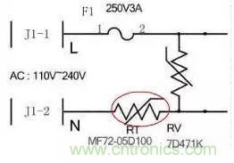 NTC是以氧化錳等為主要原料制造的精細(xì)半導(dǎo)體電子陶瓷元件。電阻值隨溫度的變化呈現(xiàn)非線性變化,電阻值隨溫度升高而降低。利用這一特性,在電路的輸入端串聯(lián)一個負(fù)溫度系數(shù)熱敏電阻增加線路的阻抗,這樣就可以有效的抑制開機(jī)時產(chǎn)生的浪涌電壓形成的浪涌電流。當(dāng)電路進(jìn)入穩(wěn)態(tài)工作時,由于線路中持續(xù)工作電流引起的NTC發(fā)熱,使得電阻器的電阻值變得很小,對線路造成的影響可以完全忽略。