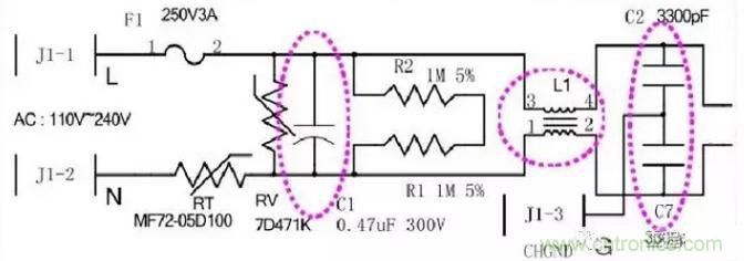 1、交流電源輸入分為3個端子:火線(L)/零線(N)/地線(G)。在火線和地線之間以及在零線和地線之間并接的電容, 這兩個Y電容連接的位置比較關(guān)鍵,必須需要符合相關(guān)安全標(biāo)準(zhǔn), 以防引起電子設(shè)備漏電或機(jī)殼帶電,容易危及人身安全及生命。它們都屬于安全電容,從而要求電容值不能偏大,而耐壓必須較高。