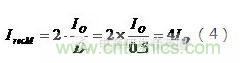 (4)有效值電流與輸出電流平均值的關(guān)系為: