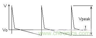 25℃溫度下,25V/1000μF低ESR鋁電解電容器的ESR約為0.09Ω。7只并聯(lián)對應(yīng)的ESR為129mΩ、5只并聯(lián)為180mΩ、4只并聯(lián)為225mΩ。由電流變化在ESR上產(chǎn)生的峰值電壓分別為2.59V、3.60V、4.50V。除此之外,濾波電容器的ESL還會在整流二極管開通時由于電流的躍變而產(chǎn)生感生電勢,這個感生電勢同樣會加到濾波電容器上,因此,濾波電容器上的峰值電壓將不只是上述的2.59V、3.60V、4.50V。其電壓波形如圖3。