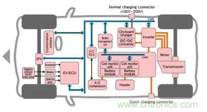 圖1:汽車(chē)EV系統(tǒng)架構(gòu)示例