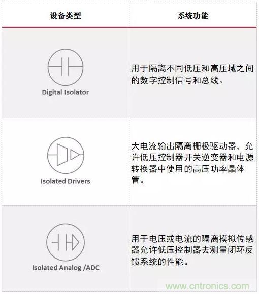 表1:電動(dòng)車(chē)輛系統(tǒng)中使用的隔離元器件