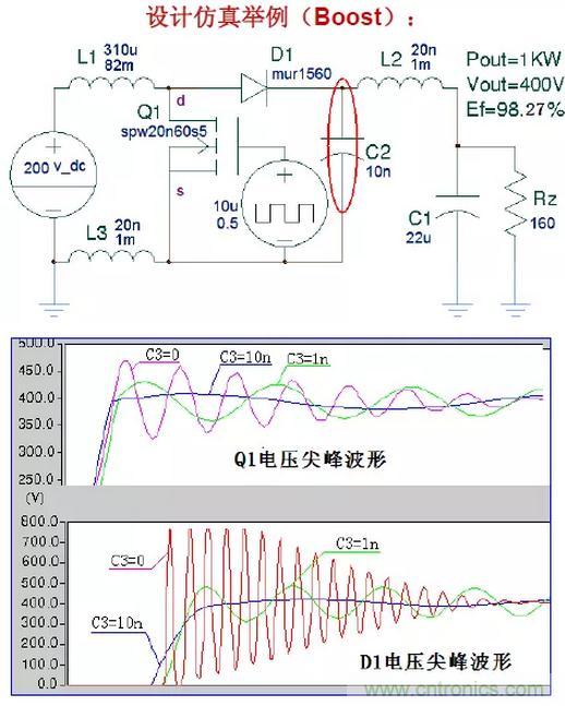 引起電壓尖峰的電流可能是:拓撲電流、二極管反向恢復(fù)電流、不恰當?shù)闹C振電流等。