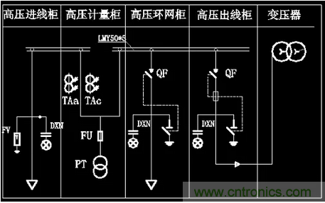 1.高壓進(jìn)線柜;2.高壓出線柜;3.高壓環(huán)網(wǎng)柜;4.高壓計(jì)量柜