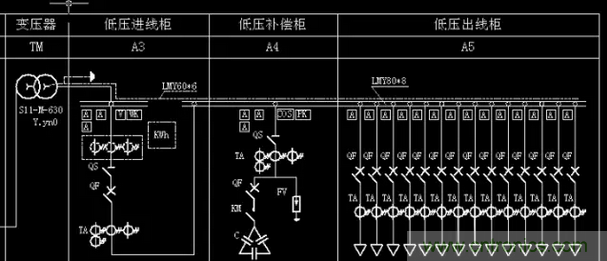 1.低壓進(jìn)線柜;2.低壓出線; 3.低壓補(bǔ)償柜