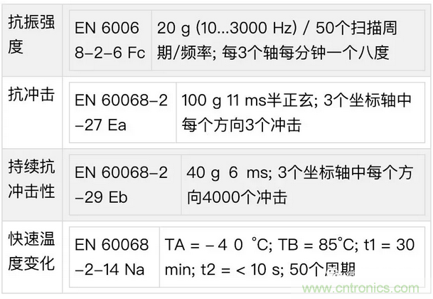 標準文件冗長,因為有標準可查看,就不一一具體說明了。這里除了可以去看看EN60068這個標準文件,選型的時候?qū)δ彩怯袔椭模貏e是如果您的產(chǎn)品應用有震動例如振動臺、抗沖擊例如機車床設備等等,或者環(huán)境使用溫度有高低溫要求的時候,這時這些標準的符合性就是您選型首要依據(jù)了。