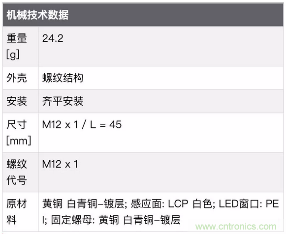 接口:接插件 1xM12 觸頭:鍍金。 這里指這個傳感器是接插型的而不是帶線的傳感器,需要準備M12插頭的線纜,我看到有仿的這款傳感器直接做成有線的...... 可能仿造的人都沒見過正品吧。觸頭鍍金,這個很重要也是一個成本所在,一般接近開關類傳感器接插頭這里使用的鍍銅的居多。我們都知道金有很好的導電性和穩(wěn)定性,如果產(chǎn)品中使用到了鍍金工藝一般就是為了提高產(chǎn)品的穩(wěn)定性的,所以可以推斷出這款傳感器應該是從設計到生產(chǎn)制造都是追求穩(wěn)定性的一個定位的產(chǎn)品。