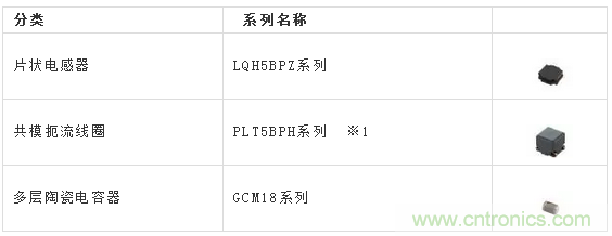 ※1:需要比1更有效果的靜噪對策時可考慮使用PLT10HH系列等其他共模扼流線圈。關(guān)于汽車的電源用共模扼流線圈,請參照以下選擇表。