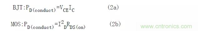 控制這個損耗的典型方法是使功率開關(guān)導(dǎo)通期間的電壓降最小。要達(dá)到這個目的,設(shè)計者必須使開關(guān)工作在飽和狀態(tài)。這些條件由式(2a)和式(2b)給出,通過基極或柵極過電流驅(qū)動,確保由外部元器件而不是功率開關(guān)本身對集電極或漏極電流進(jìn)行控制。