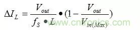 式中:△IL為電感電流的紋波,fs為開關(guān)頻率。