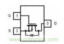 仔細(xì)看看你會(huì)發(fā)現(xiàn),這兩個(gè)圖似乎有差別,對(duì)了,這實(shí)際上是兩種不同的增強(qiáng)型場效應(yīng)管,第一個(gè)那個(gè)叫N溝道增強(qiáng)型場效應(yīng)管,第二個(gè)那個(gè)叫P溝道增強(qiáng)型場效應(yīng)管,它們的的作用是剛好相反的。前面說過,場效應(yīng)管是用電控制的開關(guān),那么我們就先講一下怎么使用它來當(dāng)開關(guān)的,從圖中我們可以看到它也像三極管一樣有三個(gè)腳,這三個(gè)腳分別叫做柵極(G)、源極(S)和漏極(D),mpn中的貼片元件示意圖是這個(gè)樣子: