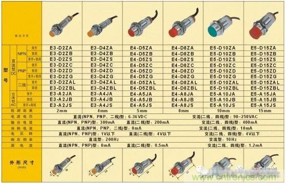 交流接近開關優(yōu)選AC 220V和AC 36V;直流接近開關優(yōu)選DC 12V和DC 24V。一般情況下,接近開關的電壓選擇范圍很廣。如下圖所示: