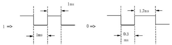 每個Byte的格式如圖3,由10bits組成,第一個bit是STARTbit固定為HI,最后一個bit是Stopbit固定為LOW,第2-9bit實際發(fā)送的數(shù)據(jù)(最先收到的bit為LSB),由于是負邏輯數(shù)據(jù)需要反相處理(LOW=1、HI=0).