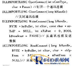 (1)底層數(shù)據(jù)通訊接口組件:負(fù)責(zé)數(shù)據(jù)通訊的鏈路層和物理層,是讀寫器與應(yīng)用軟件通訊的物理基礎(chǔ),在應(yīng)用邏輯上,與應(yīng)用通訊協(xié)議無關(guān)。所以,底層數(shù)據(jù)通訊應(yīng)獨立設(shè)計相對固定的接口,與高層應(yīng)用分離。