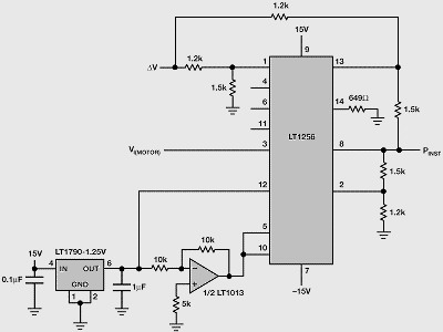 圖4所示為LT1256如何結(jié)合分離的電壓電流信號產(chǎn)生電路的瞬時功率。