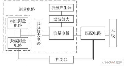 手工匹配采用的是阻抗分析儀或者網(wǎng)絡分析儀,網(wǎng)絡分析儀是用定向耦合器來測量天線電路的反射系數(shù)。但使用定向耦合器有幾個主要的缺點,例如功率損耗大和很難嵌入到IC芯片。故而本文在電路中不使用耦合器,從圖3看出,測量電路包含以下4部分。