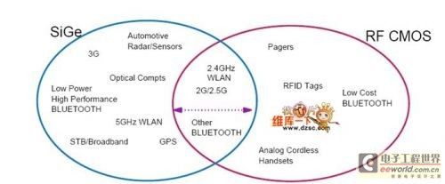 SiGe BiCMOS 工藝技術(shù)幾乎與硅半導(dǎo)體超大規(guī)模集成電路(VLSI)行業(yè)中的所有新工藝技術(shù)兼容,包括絕緣體硅(SOI)技術(shù)和溝道隔離技術(shù)。隨著擊穿電壓和高性能無源部件集成技術(shù)的發(fā)展,SiGe 正逐漸滲透至傳統(tǒng)的GaAs領(lǐng)地—即手機功率放大器應(yīng)用的領(lǐng)域。