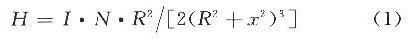 圓形線圈的磁場強度(在近場耦合有效的前提下,近場耦合有效與否的判斷在1.3節(jié))可用式(1)進行計算: