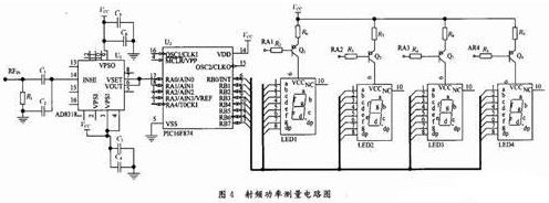 通過(guò)對(duì)射頻功率信號(hào)的測(cè)量理論分析,利用AD8318將射頻功率信號(hào)轉(zhuǎn)換為電壓信號(hào),然后經(jīng)過(guò)PIC16F874單片機(jī)進(jìn)行計(jì)數(shù)、查表,由4位LED數(shù)碼顯示出來(lái),實(shí)現(xiàn)了大動(dòng)態(tài)范圍、高精度的射頻功率測(cè)量。
