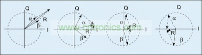 圖1用矢量圖顯示了兩個電壓恒定、相位不同的信號α與β如何合并起來形成一個任意電壓信號R,圖2是采用異相技術(shù)的功率放大器結(jié)構(gòu)示意。